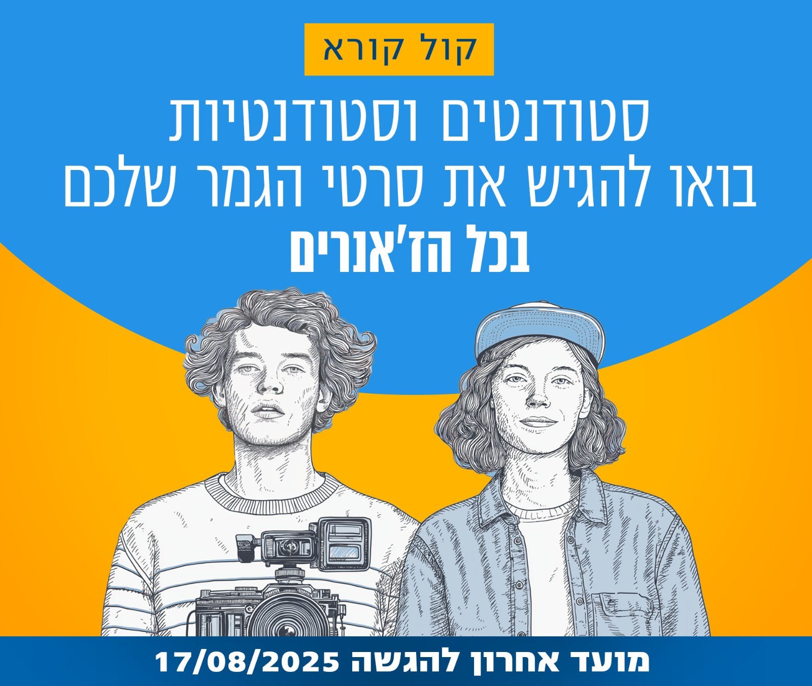 - קול קורא לסרטי גמר סטודנטים בכל הז'אנרים
